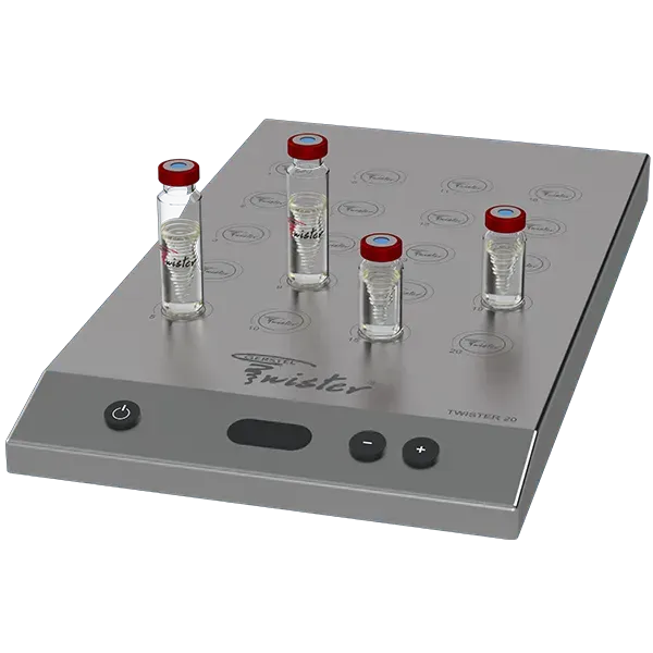 样品的提取采用 GERSTEL Twister® 进行搅拌棒吸附萃取 SBSE 。Twister 是一种包覆有聚二甲基硅氧烷(PDMS)萃取相的磁性搅拌棒。该技术可同时处理大量样品,人工操作量少。在搅拌过程中,分析物在 PDMS 萃取相与液相之间发生分配。为扩大萃取范围并提取颗粒吸附型物质,采用了由 Ochiai 等人开发的序列 SBSE 方法:对同一样品,分别在不同条件(如添加或未添加盐或溶剂)下进行两次 Twister 萃取。